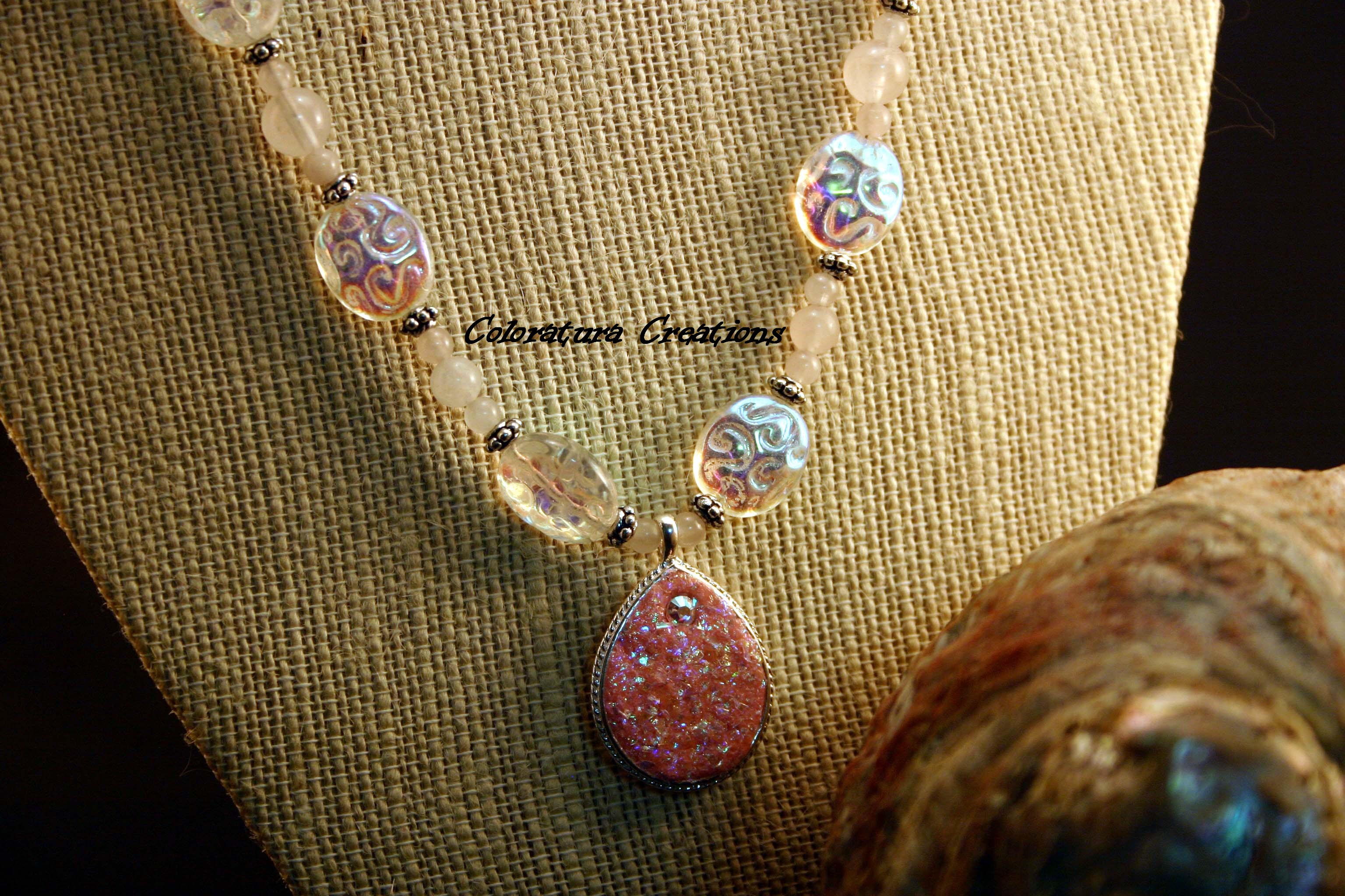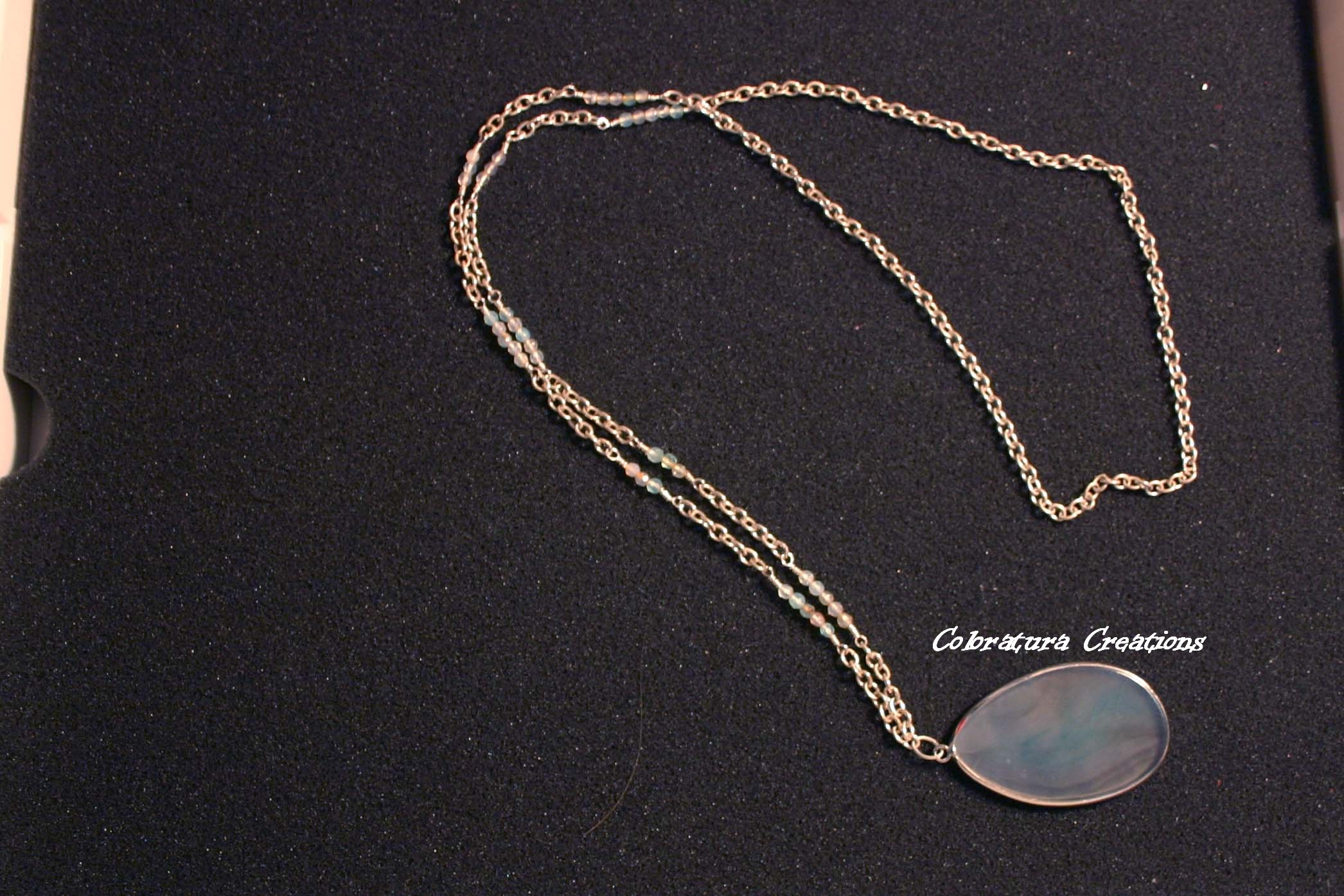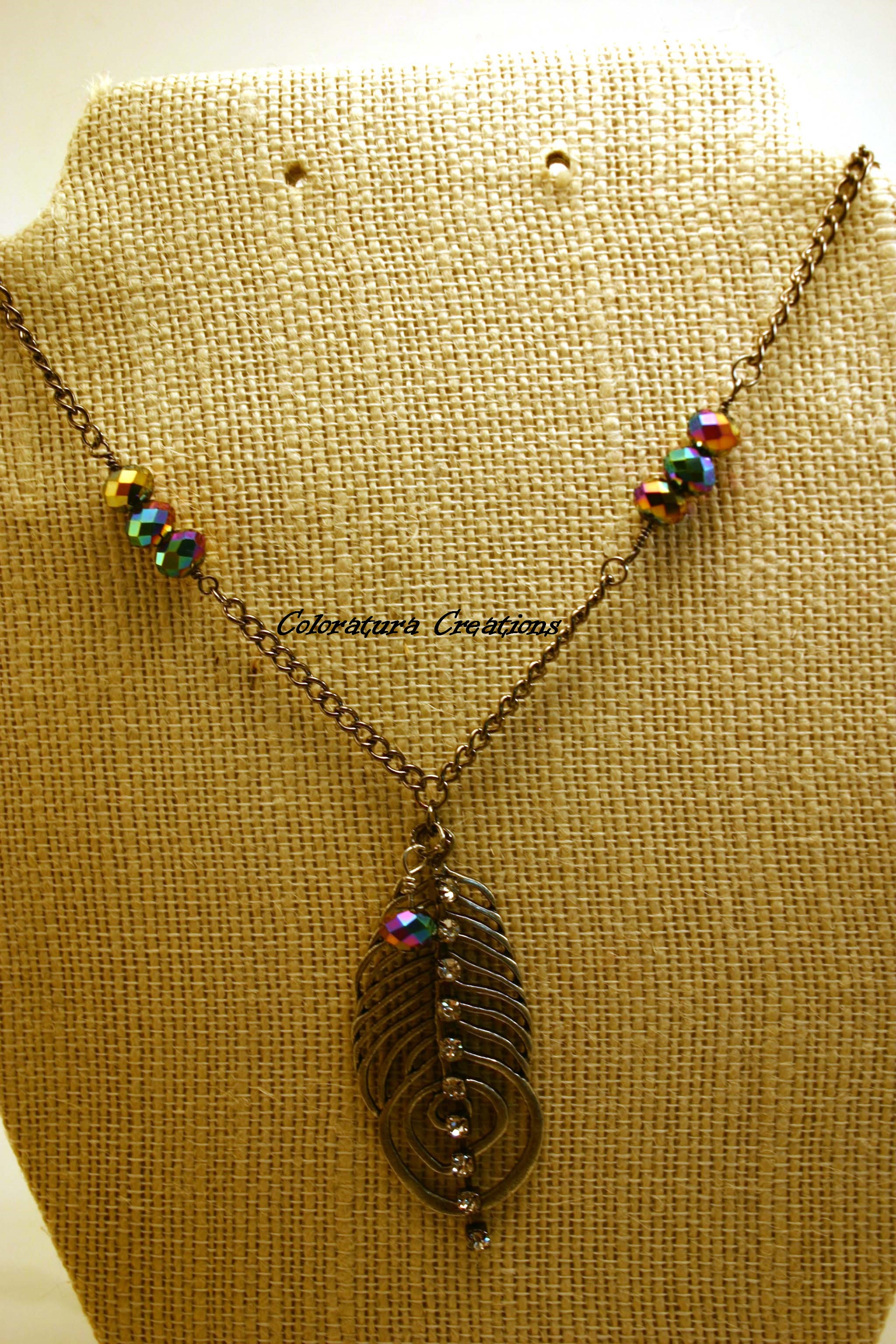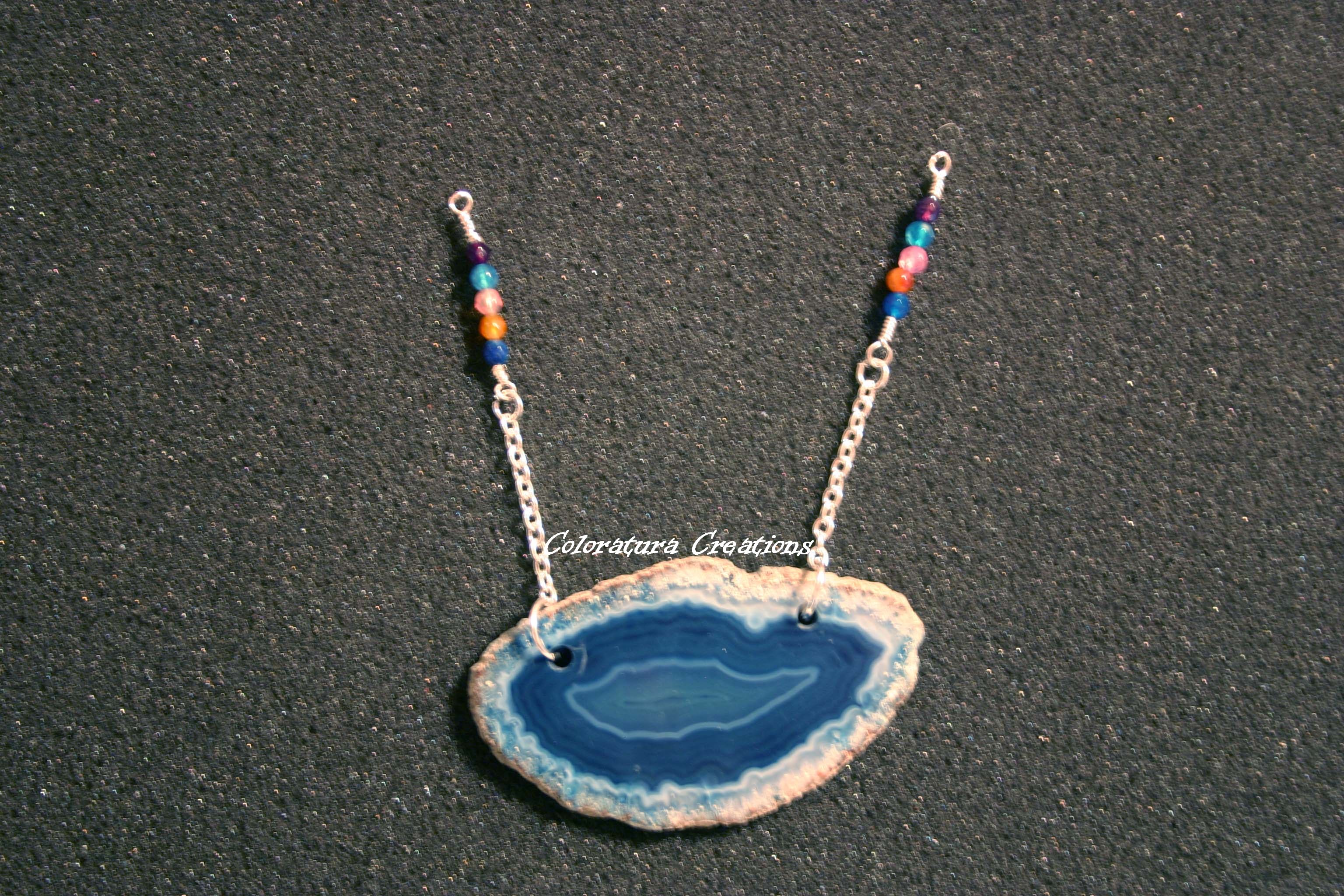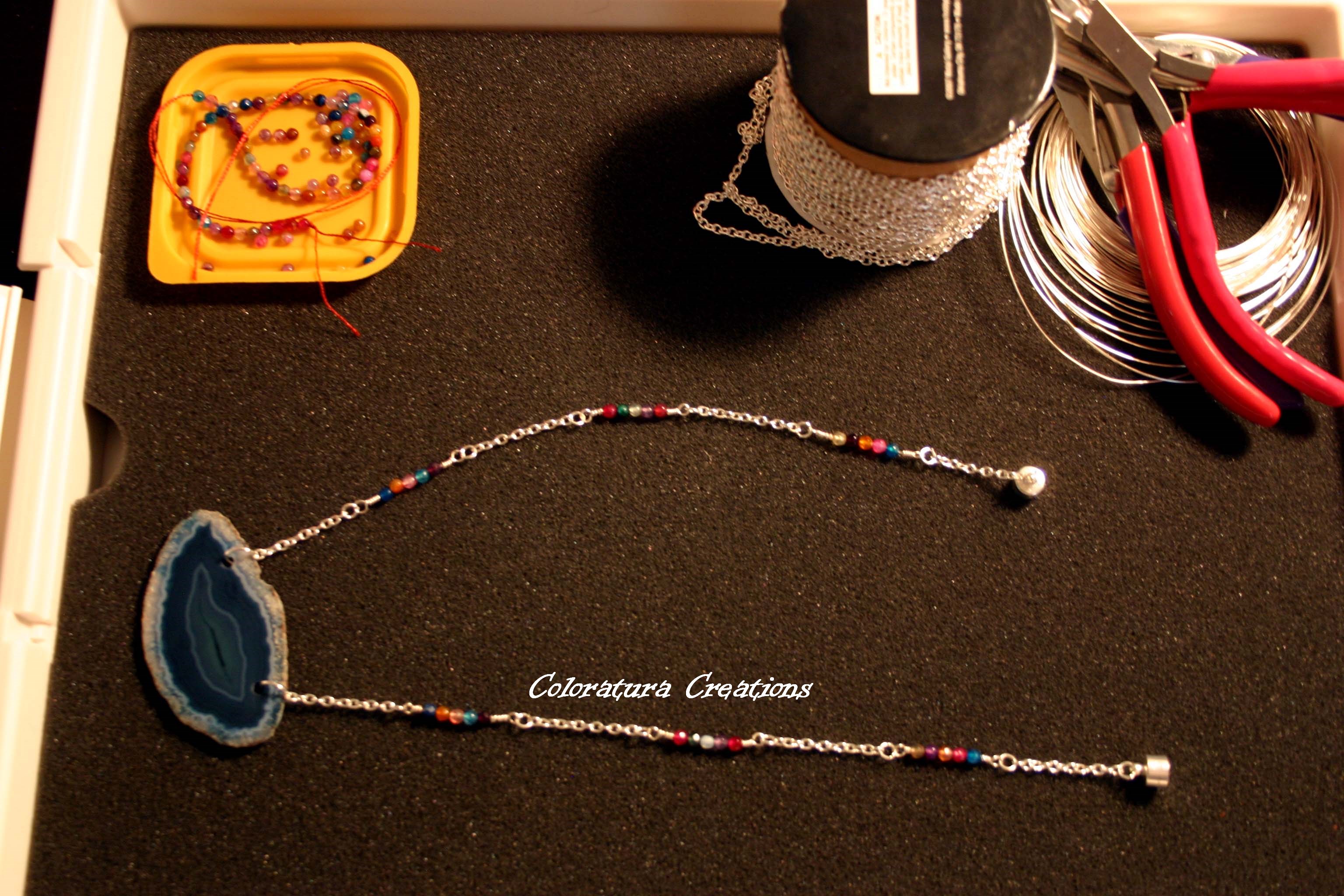 Thread one of your beads on the unbent end. I used bead caps on either side of a jasper bead for more of a finished look. Make a loop after the bead (remember to bend out). Then cut your first loop off.